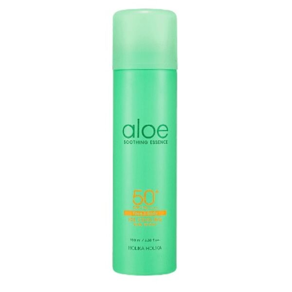 Holika Holika Aloe Ice Cooling Spray Mgiełka z SPF50+ Mgiełka do twarzy w aerozolu posiadająca wysoki filtr ochronny skórę. Kosmetyk jest niesamowicie wygodny i szybki w aplikacji. Posiada bardzo lekką konsystencję, która szybko się wchłania. Oprócz właściwości ochronnych, wykazuje działanie łagodzące oraz chłodzące skórę. W swoim składzie zawiera wyciąg z wąkroty azjatyckiej, wyciąg z nasion chia, ekstrakt z liści aloesu. Stanowi doskonałe uzupełnienie codziennej pielęgnacji. Pojemność: 100ml