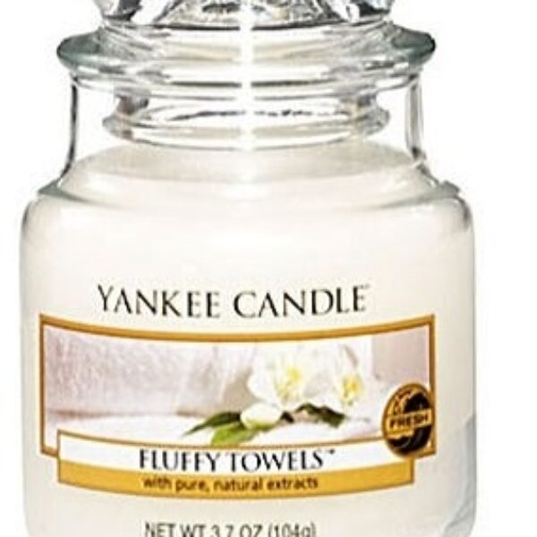 Yankee Candle Świeca w Małym Słoiku Fluffy Towels:świeca zapachowa w małym słoikuprodukt posiada aromat świeżego prania z nutą cytryny, jabłka oraz lawendyświeca zapewnia cudowne doznania zapachoweWaga produktu: 104gWydajność zapachu: 25 - 40 godzinSeria: ClassicLinia zapachowa: Rześkie