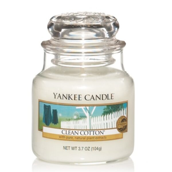 Yankee Candle Świeca w Małym Słoiku Clean Cotton:świeca zapachowa w średnim słoikuprodukt posiada aromat: świeżego prania, kwiatów oraz cytrynyświeca zapewnia cudowne doznania zapachoweWaga produktu: 104gWydajność zapachu: 25 - 40 godzinSeria: Classic