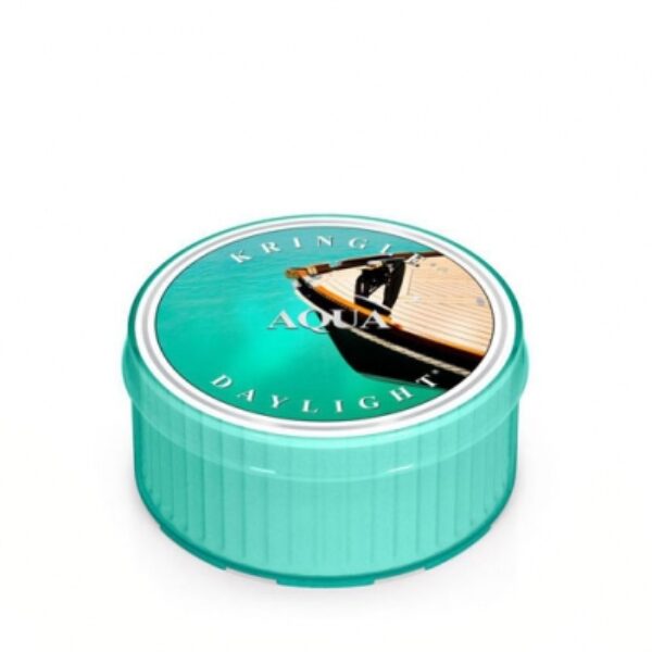 Kringle Candle Daylight Świeczka zapachowa Aqua:świeczka zapachowa zamknięta w kolorowym opakowaniuprodukt posiada aromat bergamotki, piżma i drzewa sandałowegoświeczka działa relaksująco, otula pomieszczenie wyjątkowym zapachemCzas palenia: ok. 12 godzinWaga: 35g