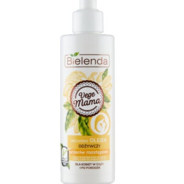Bielenda Vege Mama Olejek Odżywczy Przeciw Rozstępom 200mlVege mama to nowa linia produktów marki Bielenda. Została stworzona z myślą o kobietach w czasie ciąży oraz tych, które są po porodzie. Linia zawiera szereg produktów pielęgnacyjnych i wegańskich. Olejek działa odżywczo i chroni skórę przed pojawieniem się rozstępów. W swoim składzie zawiera olej tamanu, witaminę E oraz kakaowiec. Stanowi doskonałe uzupełnienie codziennej pielęgnacji. Zawiera wygodne opakowanie z pompką. Pojemność: 200ml