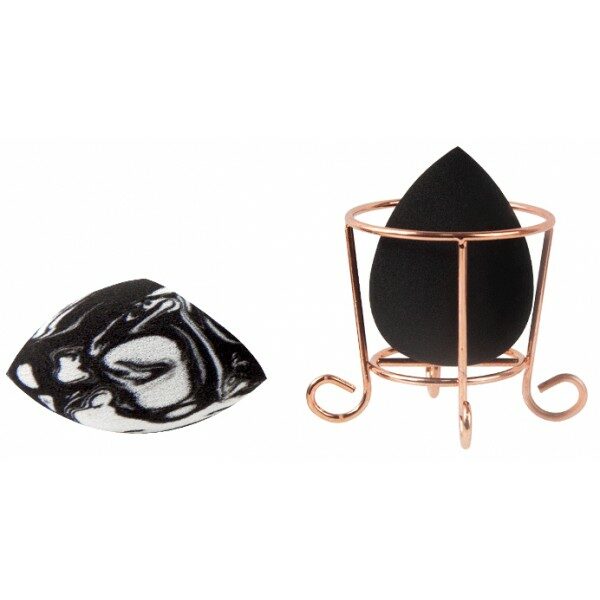 Donegal Zestaw Gąbek do Makijażu z KoszyczkiemGąbeczki do makijażu marki Donegal.Zestaw zawiera:dwie gąbeczki do makijażu,koszyczek na gąbeczki.Gąbeczki posiadają dwa różne kształty - jedna w kształcie kropli, a druga z jednym ściętym bokiem.Posiadają idealną porowatość, dzięki czemu doskonale wtapiają produkty kremowe w skórę.Nie pozostawiają nieestetycznych smug i zacieków.Są niezwykle miękkie, a zwilżenie gąbki pozwoli uzyskać jeszcze lepszy efekt na skórze.Efektowny złoty koszyczek pozwala na higieniczne przechowywanie gąbeczki.Wymiary:czarna gąbka: 5,2 x 4 cmczarno-biała, marmurkowa gąbka: 6 x 3,6 cmkoszyczek: 5,2 x 5,2 cm