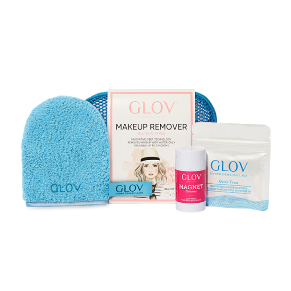 GLOV Travel Set Zestaw Produktów Glov Niebieski zawiera:kosmetyczkę na produktymałą rękawicę do demakijażuGLOV Quick Treat - mini rękawica do demakijażumydełko podróżnewieszaczek z przyssawkąProdukt idealnie sprawdzi się w podróży.