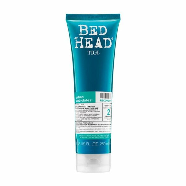 Tigi Bed Head Szampon do Włosów Recovery 250mlSzampon do włosów bardzo zniszczonych, farbowanych, rozjaśnianych. Kosmetyk doskonale oczyszcza włosy i skórę głowy. Sprawia, że włosy delikatne prezentują się na zdrowsze i grubsze. Aktywne składniki zwiększają wytrzymałość włosów, pielęgnują je i wzmacniają. Pozostawia na włosach zdrowy połysk.Pojemność: 250ml