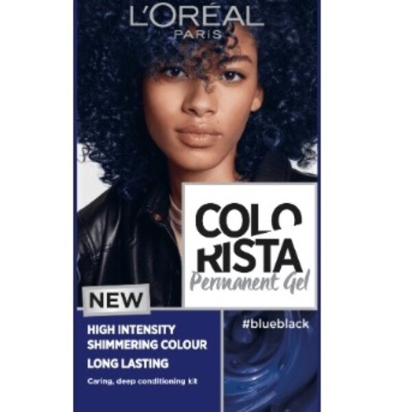 Loreal Colorista PermanentGel Farba do Włosów #blueblackCharakterystyczną cechy serii Colorista marki Loreal jest wyjątkowa trwałość koloru oraz inspirujące odcienie.Farba zapewnia trwałą koloryzację i odcień pełen wyrazu. Stworzona została do każdego rodzaju włosów. Jest szybka i łatwa w aplikacji - szczegółowa instrukcja wykonania dołączona jest do farby. Dodatkowym atutem jest wyjątkowy blask, który jest wynikiem aplikacji farby. Kolor: #blueblack