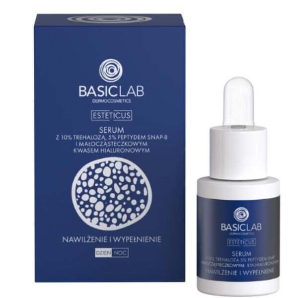BasicLab Esteticus Serum Wypełniające 15mlSerum do twarzy o właściwościach wypełniających. Stworzone na bazie trehalozy w stężeniu 10%.Wzbogacone zostało peptydami, małocząsteczkowym kwasem hialuronowym. Kosmetyk widocznie nawilża skórę i wypełnia. Działa ujędrniająco i napinająco. Serum może być stosowane zarówno podczas porannej, jak i wieczornej pielęgnacji. Pojemność: 15mlBasicLab Dermocosmetics to marka, która jest połączeniem dermokosmetyków i najwyższej i najbardziej nowoczesnej technologii. Formuły produktów zostały stworzone w taki sposób, aby zminimalizować ryzyko występowania podrażnień i alergii, w związku z tym nie posiadają one w swoich składach dodatków zapachowych.