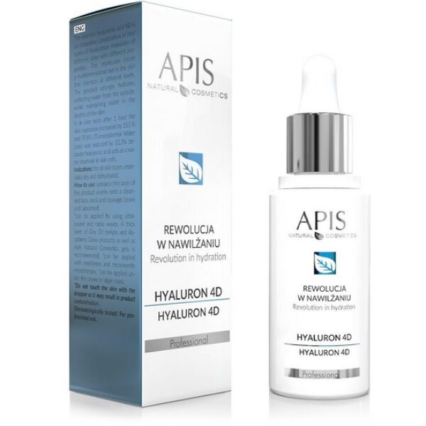 APIS Koncentrat Hyaluron 4D 30mlKosmetyk stworzony z myślą o cerze suchej i odwodnionej. Posiada bezzapachową formułę.Kosmetyk jest połączeniem czterech rodzajów cząsteczek hialuronowych. Doskonale nawilżają i napinają skórę, wnikają w głąb skóry. Koncentrat może być wykorzystywany w połączeniu z ultradźwiękami i falami radiowymi, przy mezoterapii bezigłowej i mikroigłowej. Pojemność: 30mlAPIS to rodzima marka, która posiada w swoim asortymencie profesjonalne kosmetyki do pielęgnacji twarzy, ciała, a nawet włosów.Ich kosmetyki dedykowane są zarówno dla klienta indywidualnego, jak również salonów kosmetycznych i gabinetów profesjonalnych.