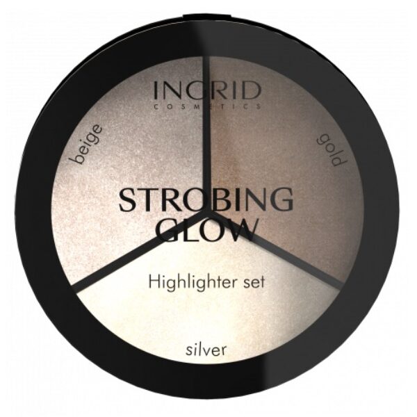Ingrid Strobing Glow Paleta Rozświetlaczy Paleta rozświetlaczy przeznaczonych do modelowania i konturowania twarzy. W skład paletki wchodzą trzy odcienie - szampański, o chłodnej tonacji oraz złoty. Kosmetyk pozwala nadać efekt zdrowej, rozświetlonej skóry.Rozświetlacze z łatwością transferują się na skórę, rozcierają i łączą z innymi kosmetykami.Produkt wegański. Pojemność: 15g