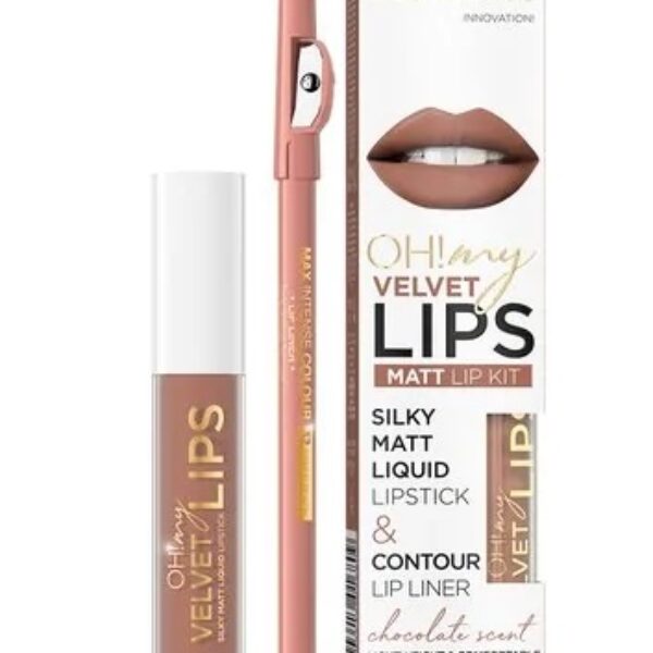 Eveline Oh! My Lips Zestaw do Makijażu Ust 14 Choco TruffleW zestawie znajdziemy płynną, matową pomadkę do ust oraz idealnie dobraną konturówkę o tej samej barwie.Płynna pomadka jest wzbogaconą witaminę E oraz kompleksem Moist-in Colour - co zapewnia ustom odpowiedni poziom nawilżenia.Pomadka nie wysusza zatem ust, pomimo matowego i trwałego wykończenia - wręcz przeciwnie głęboko nawilża i odżywia usta.Konturówka pozwala na wyrysowanie idealnego konturu ust, który przedłuża trwałość makijażu. Twoje usta pokochają ten zestaw!Produkt dostępny jest w kilku wersjach kolorystycznych. Pojemność: 4,5ml - pomadkaSposób użycia: Obrysuj usta konturówką, a następnie nanieś aplikatorem jedną warstwę pomadki w płynie.