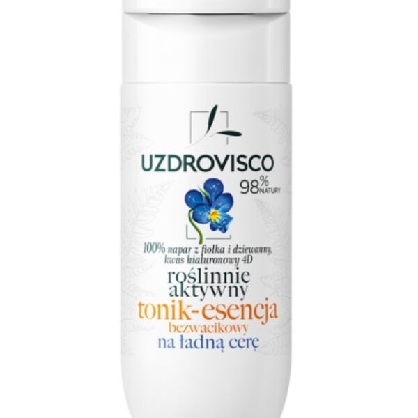 Uzdrovisco Roślinnie Aktywny Tonik-Esencja na Ładną Cerę 150mlTonik-esencja o działaniu odświeżającym, nawilżającym. Kosmetyk doskonale uzupełnia codzienną pielęgnację każdego rodzaju skóry.Stworzony na bazie naparu z fiołka i dziewanny, kwasu hialuronowego, ekstraktu z fiołka.Zawiera aż 98% składników pochodzenia naturalnego. Kosmetyk nie wymaga stosowania wacików, powinien być aplikowany dłońmi bezpośrednio na skórę.Pojemność: 150ml