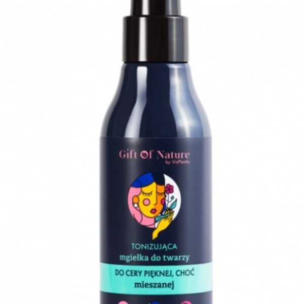 Gift Of Nature Tonizująca Mgiełka Cera Mieszana 150mlMgiełka o działaniu tonizującym zamknięta w wygodnym opakowaniu z atomizerem. Produkt nawilża, odświeża i przywraca skórze odpowiednie pH. Kosmetyk zawiera 99% składników pochodzenia naturalnego. Dedykowany jest do cery mieszanej. Wegańska formuła.Do codziennego stosowania. Pojemność: 150ml