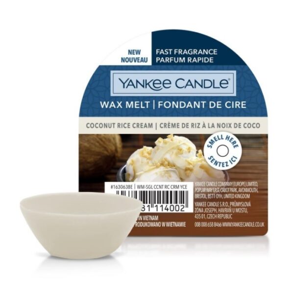 Yankee Candle Wosk Coconut Rice CreamWosk marki Yankee Candle. Wśród nut zapachowych wyróżnić można: ryż bambusowy, drzewo sandałowe, lilię wodną, Wosk zapachowy należy umieści w misce kominka i podgrzać neutralną świecą.Zapewnia cudowne doznania zapachowe.Waga produktu: 22gWydajność zapachu: do 8h