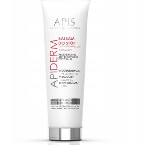 APIS Apiderm Balsam do Stóp Odbudowująco-Odżywczy 100mlBalsam do stóp o działaniu odbudowująco-odżywczym. Kosmetyk działa regenerująco, łagodząco i natłuszczająco na skórę stóp. W swoim składzie zawiera między innymi olej słonecznikowy, lniany, arganowy, kokosowy oraz masło shea. Łagodzi podrażnienia i zmiękcza skórę.Pojemność: 100mlAPIS to rodzima marka, która posiada w swoim asortymencie profesjonalne kosmetyki do pielęgnacji twarzy, ciała, a nawet włosów.Ich kosmetyki dedykowane są zarówno dla klienta indywidualnego, jak również salonów kosmetycznych i gabinetów profesjonalnych.