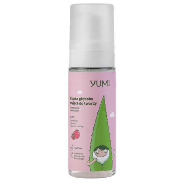 YUMI Pianka Myjąca do Twarzy Malina i Granat 180mlGłęboko oczyszczająca pianka do twarzy marki YUMI. Doskonale oczyszcza skórę, usuwa nadmiar sebum i pozostałości makijażu. Stworzony na bazie soku z liści aloesu, który działa łagodząco i kojąco. Produkt w 98% stworzony na bazie składników pochodzenia naturalnego. W 100% wegański. Wersja: Malina i GranatDziałanie: Intensywne nawilżenie Pojemność: 180ml