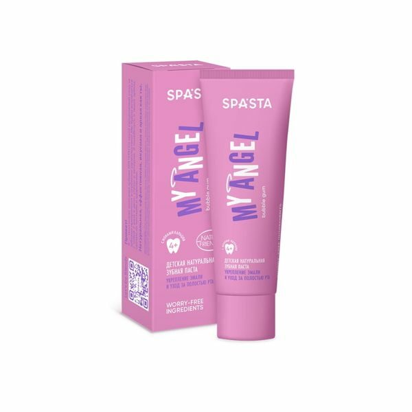 Spasta My Angel Pasta do Zębów dla Dzieci 50mlPasta do zębów dla dzieci o smaku gumy balonowej. W swoim składzie posiada aktywny wapń, który dba o odpowiednią higienę jamy ustnej i mineralizację szkliwa. Pasta wzmacnia dziąsła, chroni przed próchnicą. Stworzona z myślą o najmłodszych. Pojemność: 50mlDla dzieci 4+