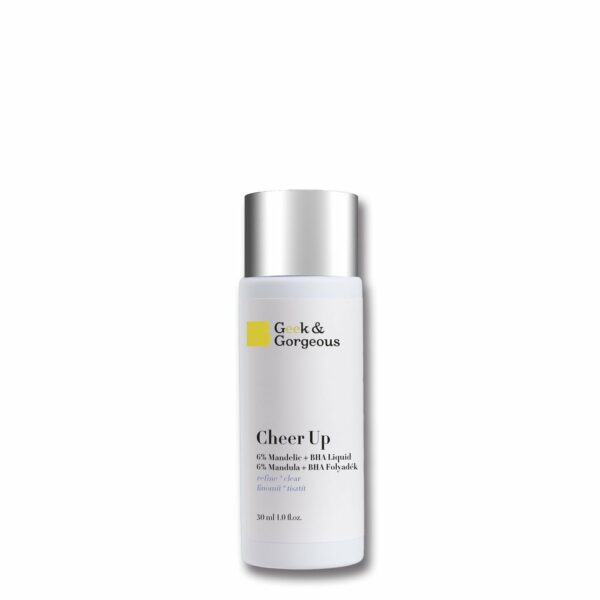 Geek & Gorgeous Cheer Up Tonik do Twarzy z Kwasem Migdałowym + BHA 30mlTonik do twarzy stworzony z myślą o skórze mieszanej. W swoim składzie zawiera kwas migdałowy w stężeniu 6% oraz kwas BHA. Doskonale oczyszcza, a jednocześnie równoważy cerę. Produkt delikatnie, ale skutecznie złuszcza naskórek. Kosmetyk należy stosować w taki sam sposób jak tonik - aplikując na wacik, a następnie na skórę. Pojemność: 30ml