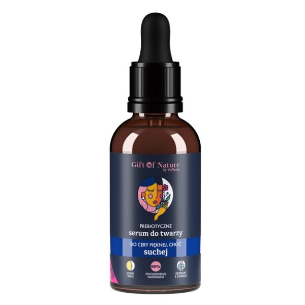 Gift Of Nature Serum do Skóry Suchej 30mlPrebiotyczne serum do twarzy do skóry suchej. Produkt stworzony został na bazie składników pochodzenia naturalnego.Kosmetyk posiada w swoim składzie lukrecję, która doskonale zatrzymuje wodę w skórze. Pielęgnuje mikrobiom, nawilża i wzmacnia naskórek. Serum zamknięte zostało w wygodnym opakowaniu z pompką. Do codziennego stosowania. Pojemność: 30ml