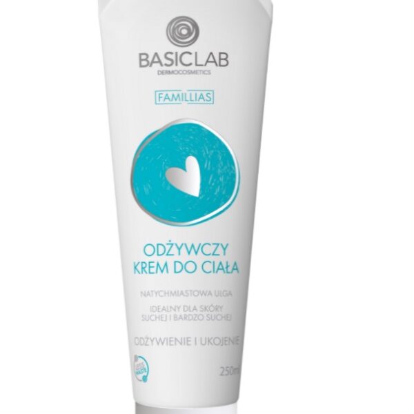 BasicLab Familias Odżywczy Krem do Ciała 250mlOdżywczy balsam, krem do ciała o działaniu regenerującym.Przynosi natychmiastowy komfort i ulgę. Doskonale sprawdzi się w przypadku każdego rodzaju skóry, w szczególności - suchej, bardzo suchej i odwodnionej. Odbudowuje i chroni barierę hydrolipidową, zapobiega podrażnieniom. Chroni skórę przed utratą wilgoci. Pojemność: 250ml