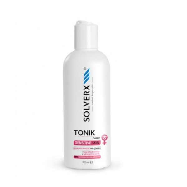 Solverx Sensitive Skin Tonik do Twarzy 200mlTonik do twarzy pochodzący z serii Sensitive Skin.Doskonale sprawdzi się podczas pielęgnacji skóry wymagającej, delikatnej. Produkt w swojej formule zawiera kwas laktobionowy, lukrecję i krwawnik. Doskonale uzupełnia pielęgnację skóry twarzy i przygotowuje skórę na przyjęcie kolejnych kroków pielęgnacyjnych. 99% składników pochodzenia naturalnego. Pojemność: 200ml