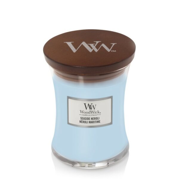 WoodWick Świeca Średnia Seaside NeroliWyjątkowa świeca zapachowa zamknięta w szklanym, średnim słoiku.Cechą charakterystyczną świec marki WoodWick jest naturalny, drewniany knot, którego dźwięk przypomina skwierczenie drewna w kominku. Świeca stanowi elegancką ozdobę każdego pomieszczenia. Produkt posiada aromat bryzy, lilii morskiej. Zapewnia niepowtarzalne doznania zapachowe. Świeca WoodWick jest idealnym pomysłem na prezent. Waga produktu: 275gTyp knotu: drewniany
