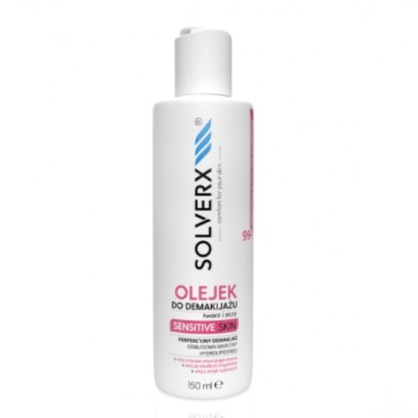 Solverx Sensitive Skin Olejek do Demakijażu 150mlOlejek przeznaczony do oczyszczania i demakijażu skóry twarzy oraz oczu.Posiada formułę przyjazną dla skóry wymagającej i wrażliwej. Doskonale oczyszcza, usuwa makijaż, nadmiar sebum oraz zanieczyszczenia. Odbudowuje warstwę hydrolipidową i nawilża. W swoim składzie zawiera między innymi olej z nasion smoczego owocu, olej ze słodkich migdałów, olej z otrąb ryżowych. 99% składników pochodzenia naturalnego. Pojemność: 150ml