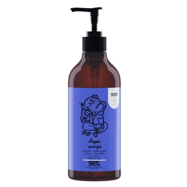 Yope Mydło do Rąk Aqua Energia 500mlŁagodne, skuteczne mydło do rąk marki YOPE. Kosmetyk w swoim składzie zawiera 98% składników pochodzenia naturalnego. Skutecznie usuwa bakterie, zanieczyszczenia . Nie narusza naturalnej bariery ochronnej skóry. Produkt zamknięty został w wygodnym opakowaniu z pompką. Wersja: Aqua Energia - Drzewo Kamforowe i Biały TymianekPojemność: 500ml