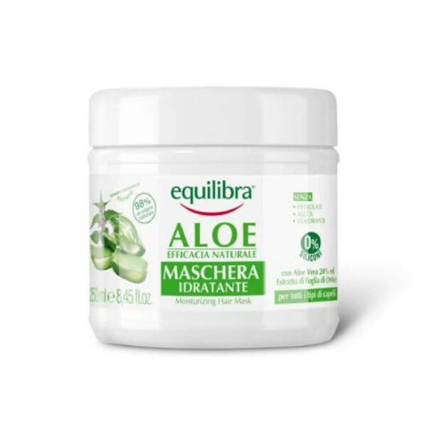 Equilibra Aloe Nawilżająca Maska do Włosów 250mlMaska do włosów o silnych właściwościach nawilżających.Produkt sprawdzi się w pielęgnacji każdego rodzaju włosów. Zawartość 20% ekstraktu z aloesu zapewnia optymalny stopień nawilżenia. W składzie maski znajdziemy wyciąg z liści pokrzywy, ekstrakt z siemienia lnianego.Regularne stosowanie maski wzmacnia, odżywia i wygładza włosy.Pojemność: 250mlSposób użycia: Maskę nałóż na mokre, umyte włosy i pozostaw na 5 minut. Po tym czasie spłucz dokładnie wodą. W przypadku kontaktu z oczami, natychmiast przemyj je wodą.Produkt przeznaczony do użytku zewnętrznego. Trzymaj poza zasięgiem dzieci.