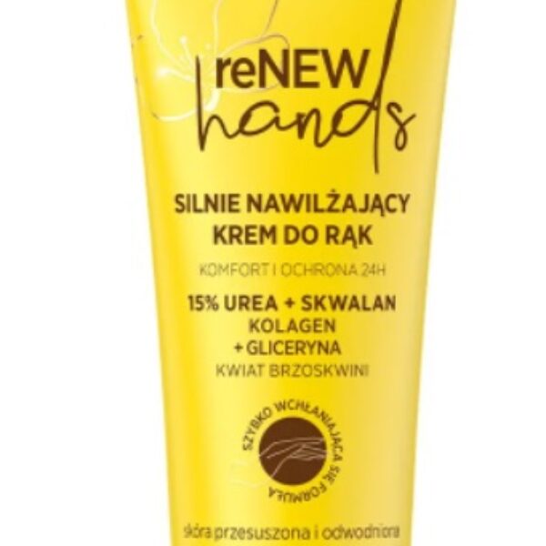 Eveline Renew Hands Krem do Rąk Kwiat Brzoskwini 75mlKrem do rąk o działaniu silnie nawilżającym skórę dłoni. W swojej formule zawiera kojący kompres dla skóry - mocznik, skwalan, koladen, glicerynę.Wzbogacony kwiatem brzoskwini.Jego formuła szybka się wchłania, nie pozostawia tłustego filmu na skórze.Dedykowany do skóry przesuszonej i odwodnionej.Wersja: kwiat brzoskwiniPojemność: 75ml
