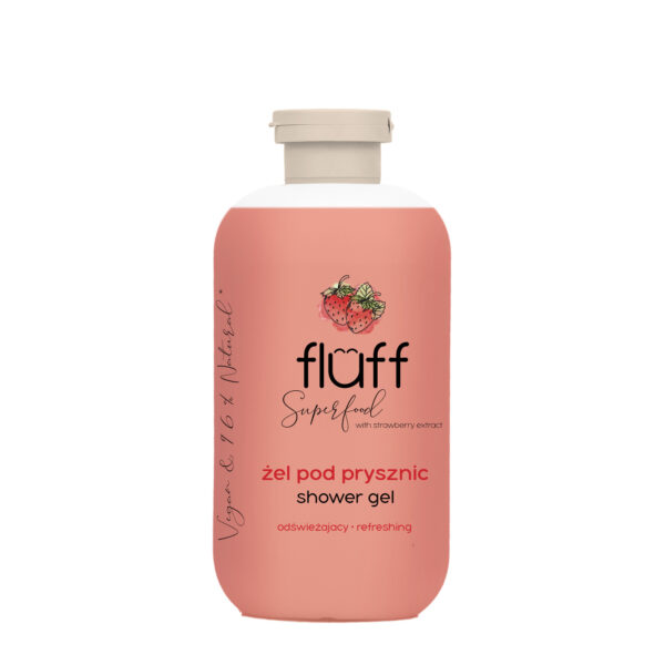 Fluff Żel pod Prysznic Truskawka 500mlŻel pod prysznic i wyjątkowym, słodkim zapachu. Kosmetyk doskonale oczyszcza ciało, pozostawia przyjemny zapach na skórze. W swojej formule zawiera składniki pielęgnujące ciało. Produkt występuje w kilku wersjach zapachowych. Pojemność: 500mlWersja: TruskawkaDziałanie: odświeżające