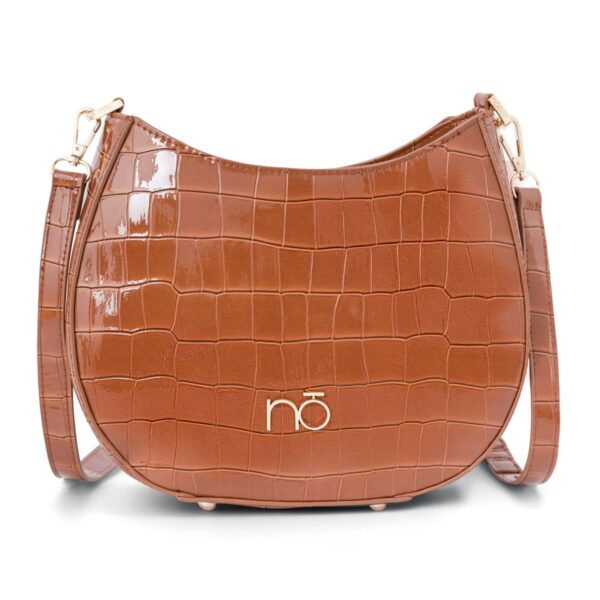 Camelowa, półokrągła listonoszka Nobo lakierowane croco