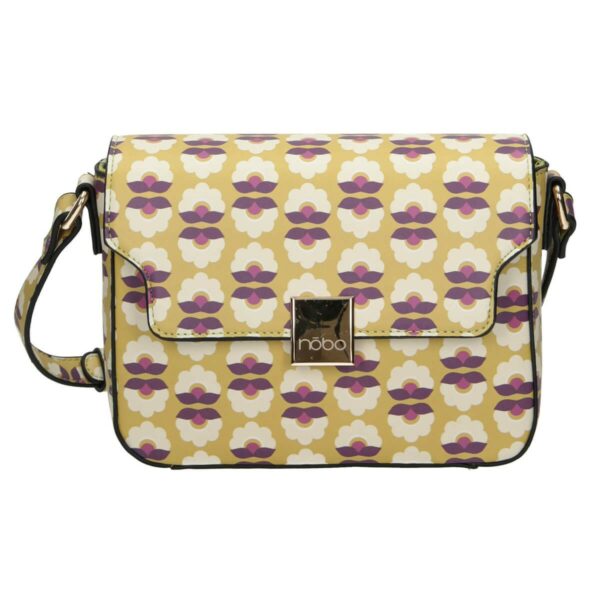 Oryginalny i zwracający uwagę print z lat 60-tych, to cecha charakterystyczna tej listonoszki Nobo. Zamykana na klapkę ze złotym zatrzaskiem. W środku znajduje się główna komora z dwoma kieszonkami. W jej wnętrzu znajduje się również dodatkowa mniejsza przegroda z tyłu. Listonoszka posiada regulowany długi pasek. Ten model nada niebanalnego stylu i charakteru Twoim codziennym stylizacjom.
