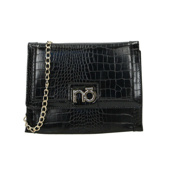 Wyróżnij się z tłumu dzięki czarnej listonoszce Nobo. Torebka została wykonana z ekoskóry przypominającej skórę krokodyla. Całość dopełnia łańcuszek, dzięki któremu możesz nosić torebkę na ramię. W wyposażeniu jest również dłuższy pasek do dopięcia. Torebka zamykana na klapkę z przekręcanym zabezpieczeniem. W środku znajdują się dwie dodatkowe kieszonki, w tym jedna zamykana na zamek błyskawiczny.