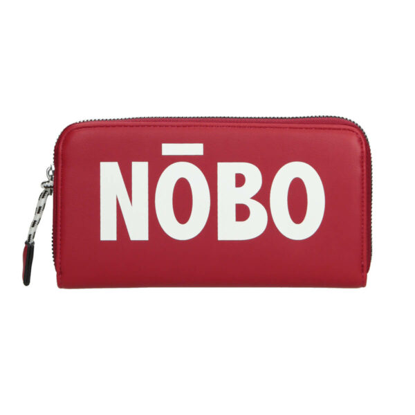Pojemny i stylowy czerwony portfel Nobo. Jego charakterystyczną cechą jest duże, białe logo firmy z przodu. W środku posiada dwie komory, które przedzielone są zapinaną kieszonką na bilon. Po bokach znajduje się 8 kieszonek na karty i 2 większe na gotówkę. Zamykany na zamek z ozdobnym sznurkiem.