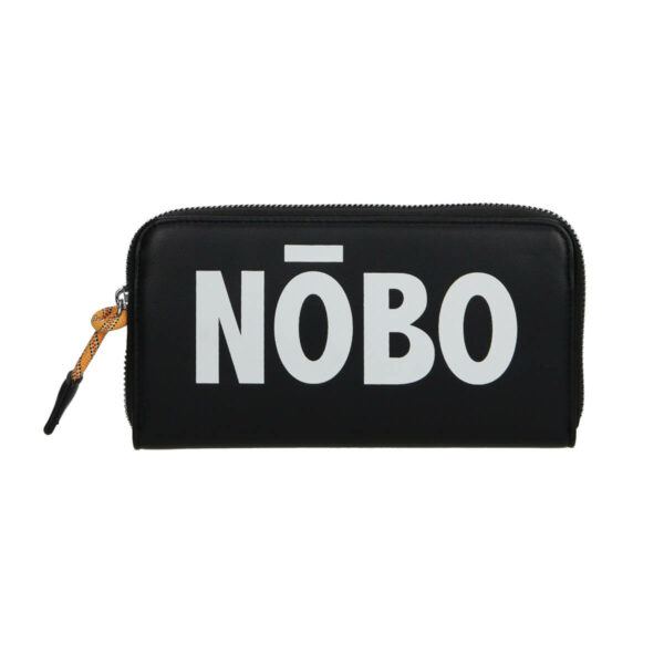 Pojemny i stylowy czarny portfel Nobo. Jego charakterystyczną cechą jest duże, białe logo firmy z przodu. W środku posiada dwie komory, które przedzielone są zapinaną kieszonką na bilon. Po bokach znajduje się 8 kieszonek na karty i 2 większe na gotówkę. Zamykany na zamek z ozdobnym sznurkiem.