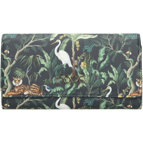Wyróżniający się portfel Nobo, posiadający charakterystyczny tropikalny nadruk. Zamykany na klapkę z magnesem, gdy go otworzysz ukaże Ci się 11 kieszonek na zamek, w tym jedna na zdjęcie oraz komora na bilon i gotówkę.