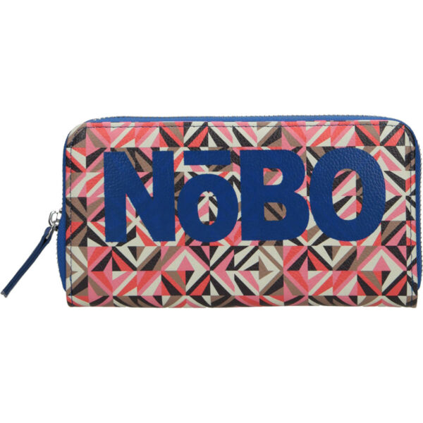 Duży portfel Nobo z multikolorowymi wzorkami i niebieskim logo. W środku posiada dwie komory przedzielone kieszonką na bilon, 8 małych kieszonek na karty oraz dwie duże na banknoty. Ten model portfela będzie idealnym wyborem, jeżeli lubisz oryginalne i niepowtarzalne rzeczy. Z pewnością łatwo znajdziesz go w torebce. Opakowany w eleganckie, czarne pudełko.
