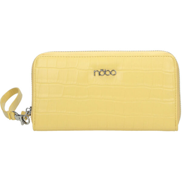 Żółty portfel Nobo z motywem skóry krokodyla i kolorowym środkiem