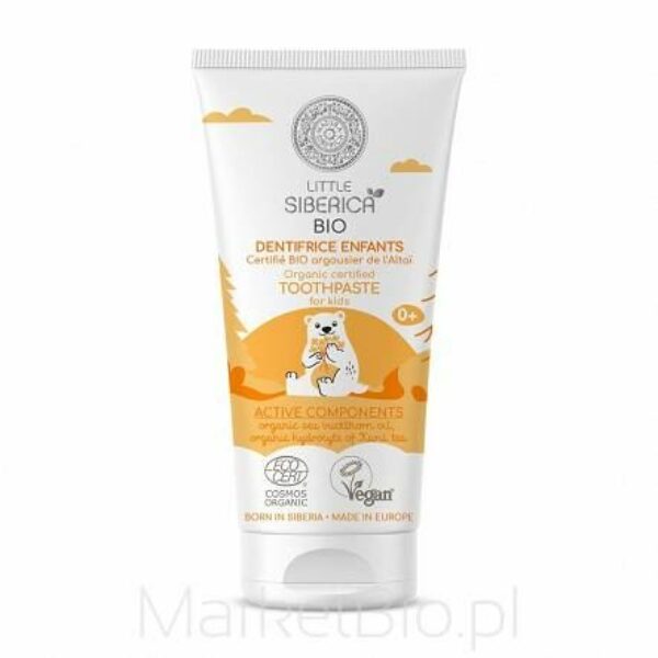 Rokitnik Ałtajski & Borówka Kurylska & Ksylitol od pierwszego dnia życia -Dokładnie czyści -Wzmacnia zęby i dziąsła -Chroni jamę ustną Posiada certyfikat ECOCERT Cosmos Organic, Vegan 99% składników naturalnych