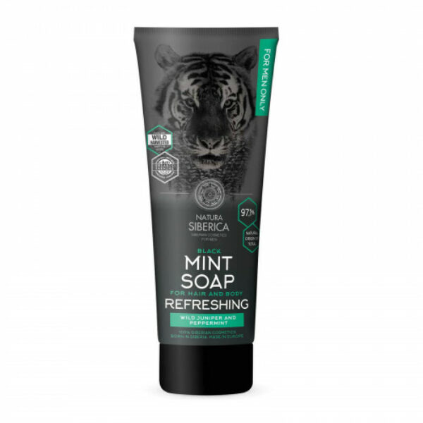 Naturalne, miętowe, odświeżające, czarne mydło do włosów i ciała, Natura Siberica Men, 200ml