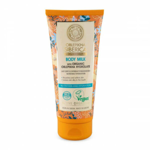 Wegańskie, odżywczo - nawadniające mleczko do ciała na bazie hydrolatu z rokitnika, Natura Sib