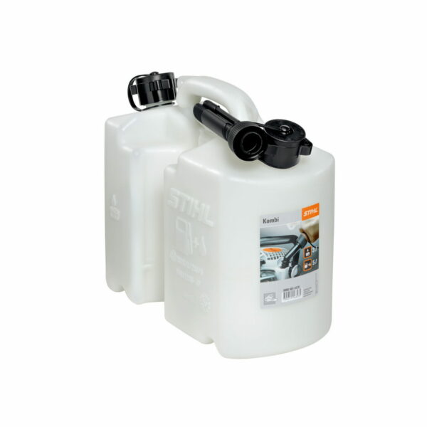 Poręczny kanister szczególnie polecany do pilarek spalinowych, producent Stihl. Do transportu 5 l paliwa i 3 l oleju do pił łańcuchowych. Karnister posiada certyfikat UN, jest przezroczysty. Dodatkowym atutem są dwa korki zabezpieczone przed dostępem dzieci, a także z rurą wlewu. Istotna informacja to fakt, że gwinty korków pasują do systemów nalewania paliwa i oleju Stihl.