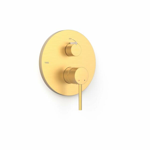 Tres Maskownica do wpuszczanego korpusu 2-drożnego RAPID-BOXTylko maskownica. Zawiera płytę dekoracyjną, uchwyt, pokrętło i ukrytą śrubę mocującą. Uzupełnienie do wpuszczanego korpusu RAPID-BOX nr ref.: 20828101OM. 24-k złoto matowe 26228101OM