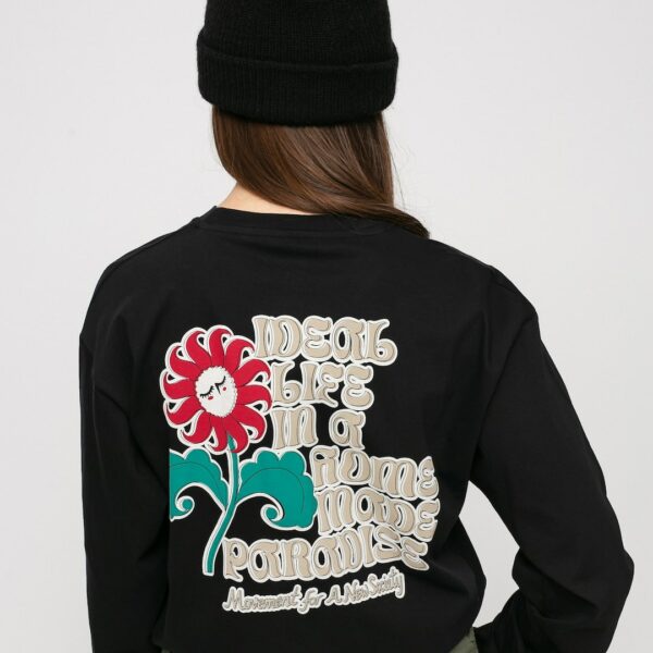 Materiał: 100% bawełna • Dekolt i mankiety obszyty miękkim ściągaczem • Długie rękawy zakończone ściągaczem • Grafika na piersi, plecach i rękawie