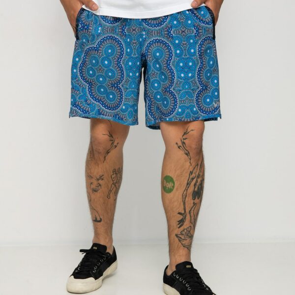 Materiał: 88% poliester, 12% elastan • Męskie elastyczne spodenki do joggingu • Kolekcja RVCA x Kelsey Brookes • Niestandardowy nadruk na całej powierzchni wykonany przez artystę RVCA ANP Kelsey Brookes • Regularny krój • Elastyczny ściągacz w pasie • Dwie kieszenie po bokach i jedna z tyłu • Logo VA na lewej nogawce • Tkana metka RVCA na tylnej kieszeni