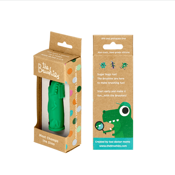 BRUSHIES to świetnie wykonane, certyfikowane, silikonowe szczoteczki - pacynki zakładane na palec. Dzięki nim dzieci zaczynają przygodę z czyszczeniem ząbków bardzo wcześnie i na wesoło. Szczoteczki dodatkowo pielęgnują dziąsła maluszków. Każdy rodzic wie, że dobre nawyki to podstawa. Zalecane są już od 4 tygodnia do 4 roku życia. Szczoteczki są wolne od BPA i ftalatów. Poza tym są nietoksyczne, bezzapachowe i bezsmakowe. Wykonane zostały w 100% ze spożywczego silikonu i zapakowane wyłącznie w opakowania z materiałów pochodzących z recyklingu. Dlaczego polecamy szczoteczki Brushies? Dlatego, że z Brushies mycie ząbków to nie tylko codzienny rytuał higieniczny, ale także mnóstwo radości, zabawy i śmiechu. Szczoteczki dostępne są też w naszym sklepie w zestawie z książeczką, w której bohaterowie do zadań specjalnych przeżywają śmieszne przygody. Są łatwe w czyszczeniu i sterylizacji. Można je myć w zmywarce. The Brushies to zdobywcy nagród m.in. Cribsie Awards. Pojawiły się też m.in. w popularnym czasopiśmie Parent’s Magazine oraz w programie telewizyjnym Today Show, Szczoteczek należy używać rano po śniadaniu i wieczorem przed snem przez co najmniej 10 sekund na górze i 10 sekund na dole.