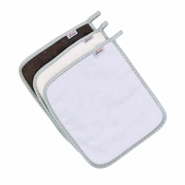 Zestaw 3 ręczniczków bambusowych o wymiarach 25 cm x 29 cm. W zestawie znajduje się kolor błękitny, ecru i szary Ręczniczki są bardzo praktyczne przy codziennej pielęgnacji maluszka. Sprawdzają się do odbijania, przetarcia buzi na sucho i mokro. Zmieszczą się wszędzie, więc możesz zabrać je ze sobą w podróż. Wykonane są z najwyższa jakości przędzy bambusowej dzięki czemu są niezwykle miękkie i delikatne. Produkt został wykonany w Polsce z 100 % cv bambus w okrywie pętlowej. Materiał posiada certyfikat Oeko-Tex Standard 100. Należy prać w pralce zgodnie z instrukcją na metce.