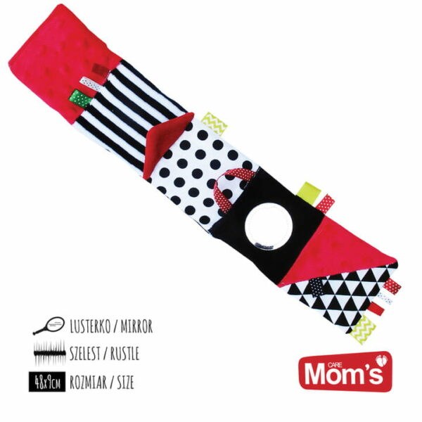 Książeczka konstrastowa stymulująca zmysły czerwona Mom’s Care. Książeczka kontrastowa pełna jest niespodzianek. Zawiera bardzo wiele elementów interaktywnych takich jak szeleszczące „kartki”, lusterko, wstążki. Zapewni dziecku wspaniałą zabawę na długi czas, a przy okazji będzie stymulować zmysły niemowlaka. Wykonana została w 100% w Polsce z przyjemnych, miękkich w dotyku materiałów o różnorodnych fakturach. Przeznaczona dla dzieci 0+. Książeczka to 10 stron przedstawiających różne wzory w kontrastowych kolorach - białym, czarnym i czerwonym. Sprawdź jak będzie stymulować rozwój Twojego maluszka.