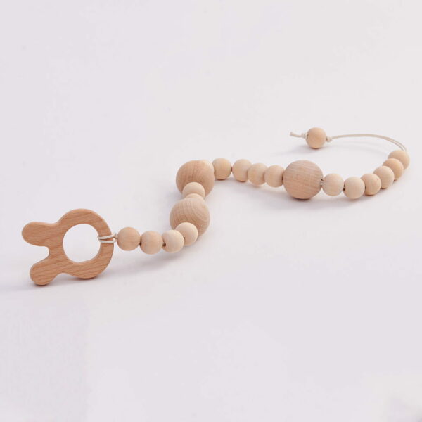 Drewniany gryzak z zawieszką Królik wykonany w 100% z naturalnego drewna bukowego. Drewno bukowe nie jest impregnowane, a więc całkowicie bezpieczne dla maluszka. Gryzak Królik posiada zaokrąglone krawędzie, tak żeby maluszek mógł bezpiecznie się nim bawić i nie uszkodzić delikatnych dziąsełek. Końcówka zawieszki to zabawny gryzak w kształcie króliczka z długimi uszkami, który połączony został z zawieszką z kulek. Okrągłe elementy będą wspaniałą zabawką dla malutkich rączek naszej pociechy. Drewniane elementy gryzaka Bim Bla najlepiej przecierać wilgotną szmatką lub czyścić szczoteczką nawilżoną wodą. Zabawkę można zaimpregnować olejem kokosowym dla zabezpieczenia drewnianych elementów. Gryzak ma wymiary około 6 cm x 5 cm / Długość zawieszki to około 40 cm