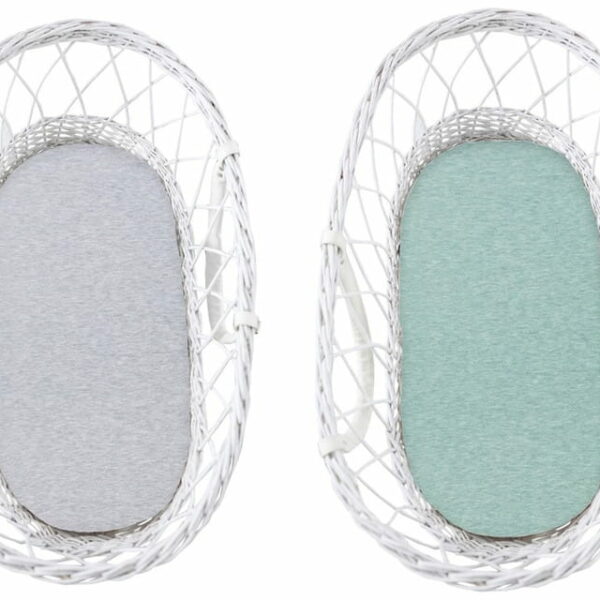 Zestaw 2 prześcieradeł z gumką do gondoli, kosza mojżesza i kołysek. Prześcieradła wykonane z wysokiej jakości, grubej dzianiny bawełnianej. Niezwykle miękkie i rozciągliwe poprzez zawartość 8 % elastanu. Można je dopasować do każdej gondoli, kosza mojżesza czy kołyski. Gumka zamocowana w prześcieradle zapobiega jego przesuwaniu. Przyjemny w dotyku materiał, z którego są wykonane jest odpowiedni dla wrażliwej skóry dziecka. Dzianina posiada certyfikat OKO-TEX Standard 100. Skład: 92% bawełna 8% elastan Liczba sztuk w opakowaniu: 2 – jasny szary i mięta. Produkt został zapakowany w pudełeczko z okienkiem i może być idealnym pomysłem na prezent.