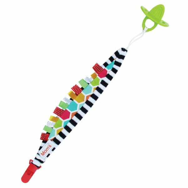Kolorowa zawieszka do smoczka z gryzakiem i klipsem do przymocowania. Zawieszka wykonana z metkami. Zakończona z jednej strony klipsem umożliwiającym przyczepianie zabawki na przykład do wózka czy ubranka. Z drugiej strony znajduje się silikonowy gryzak wykonany z bezpiecznego silikonu. Dwufunkcyjna zawieszka przyda się na spacerze lub podróży. Dzięki niej nie zgubisz smoczka i będzie on pod ręką. Specyfikacja zawieszki do smoczka z gryzakiem: rozmiar: 42 cm zawieszka z silikonowym gryzakiem klips do przyczepiania zabawki skład zawieszki: tkanina frotte Wyprodukowane w Polsce przez Moms Care (Hencz Toys) Przeznaczona dla dzieci 0+